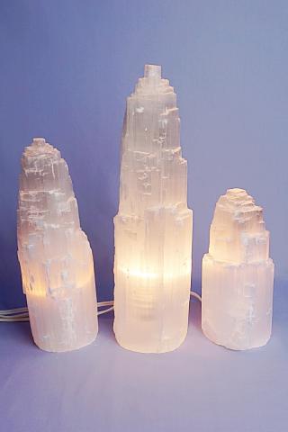 Plusieurs choix de lampes en sélénite & de cristaux sont disponibles à la boutique.