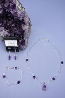 - Amethyst, freshwater pearl, quartz crystal, moonstone